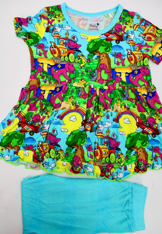 Friendly Purple Dinosaur Short Sleeve Peplum & Pants